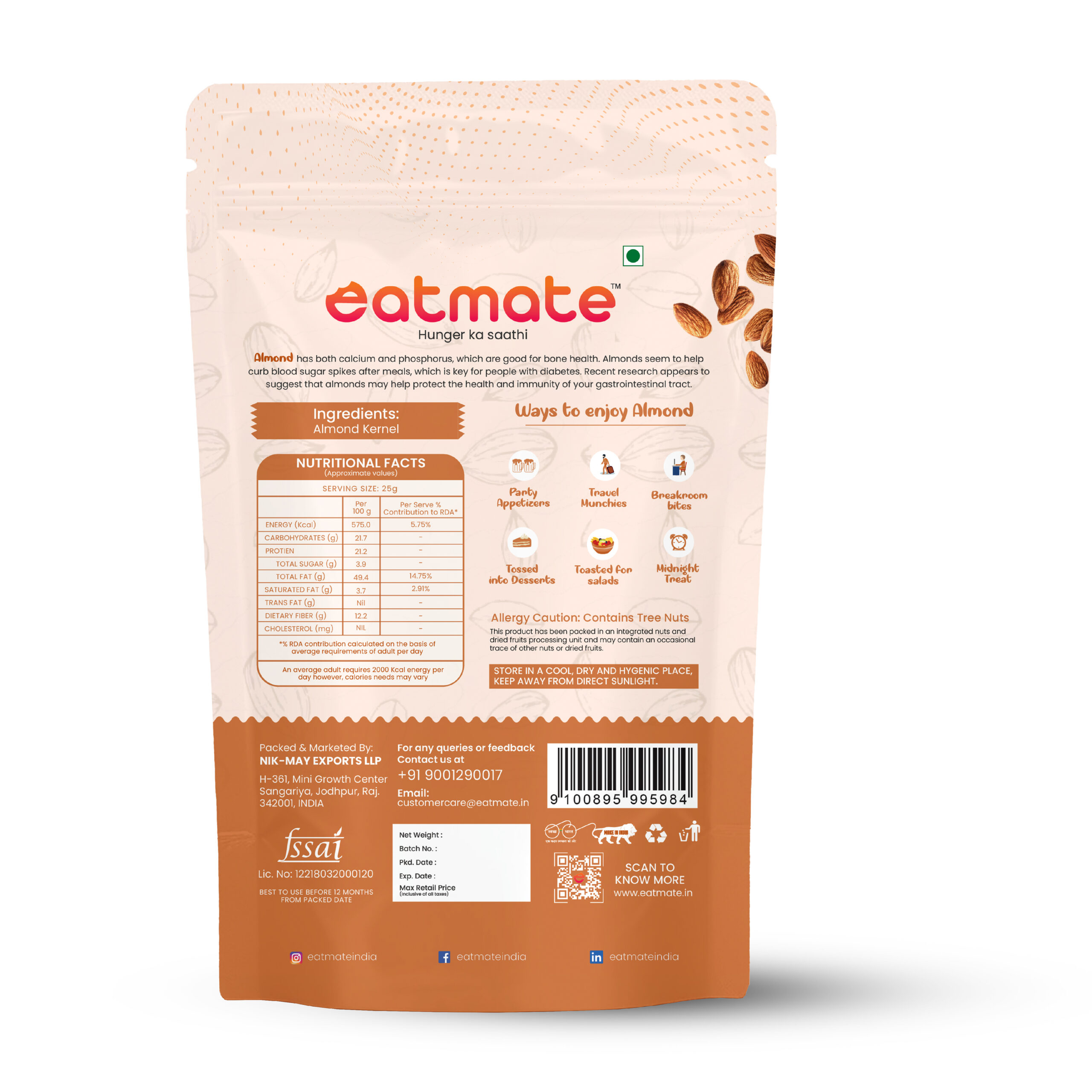 Eatmate almonds are fresh, crunchy, and perfectly sized. I snack on them daily and can genuinely taste the quality in every bite.