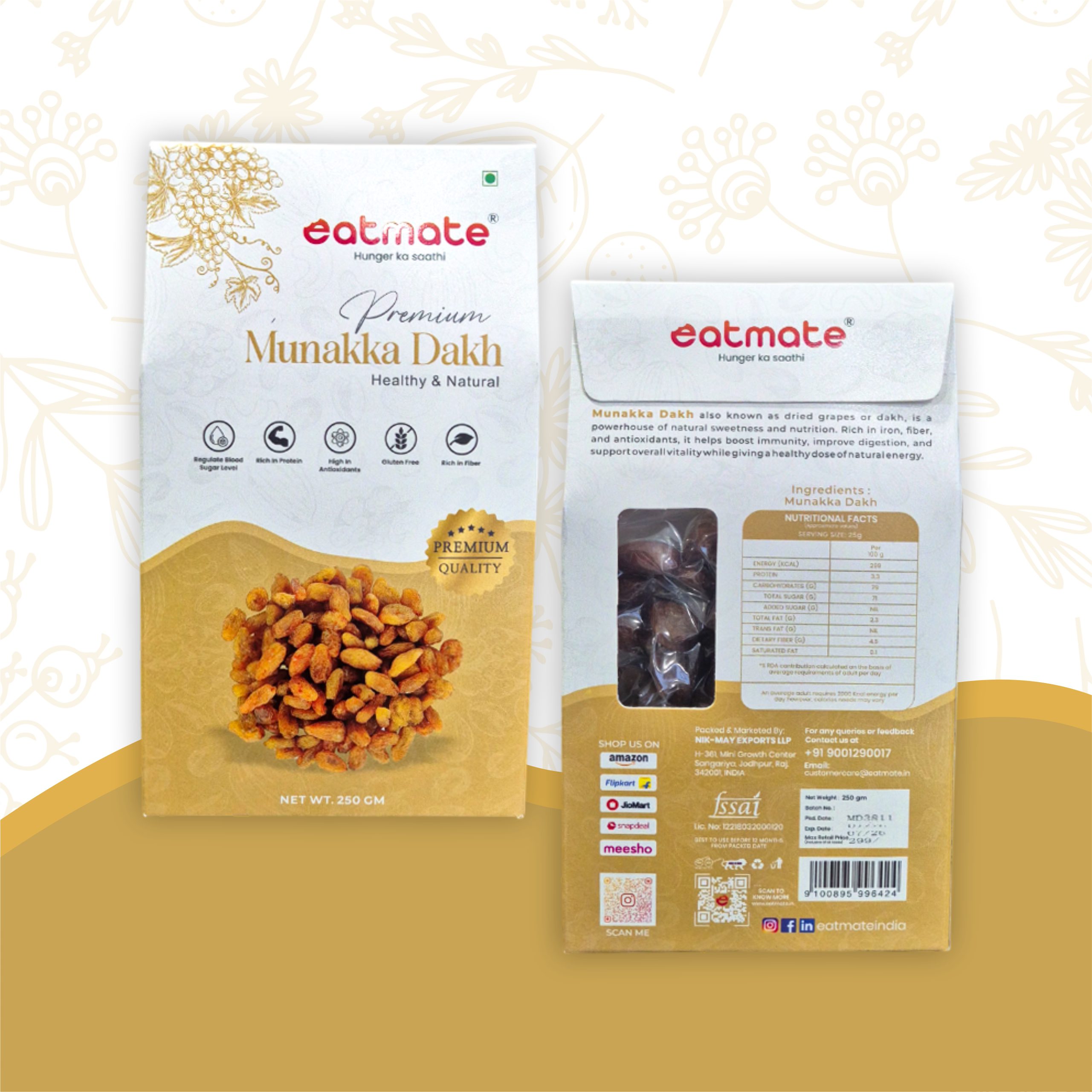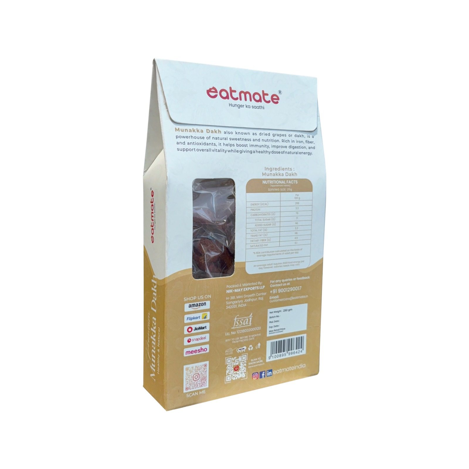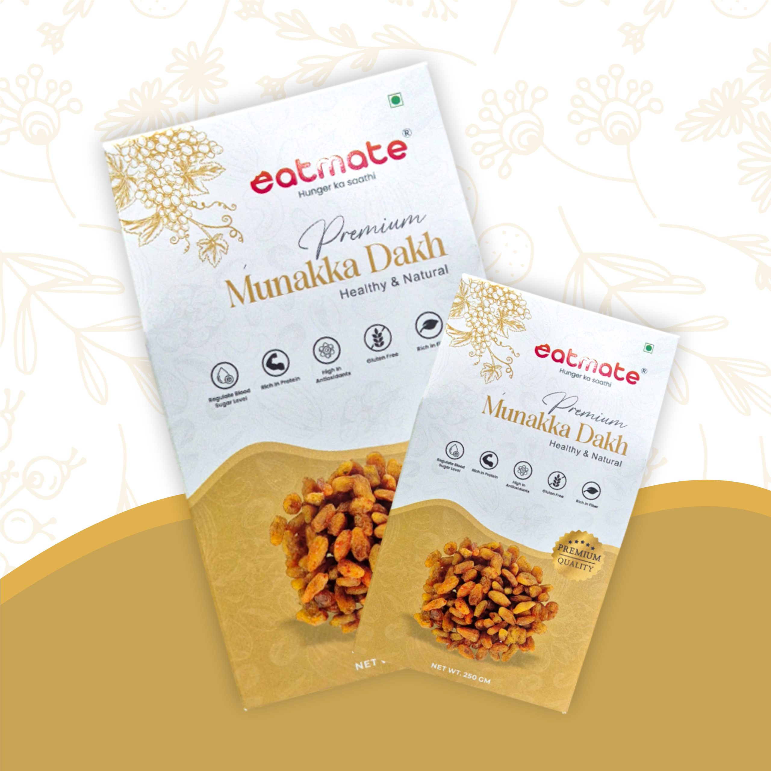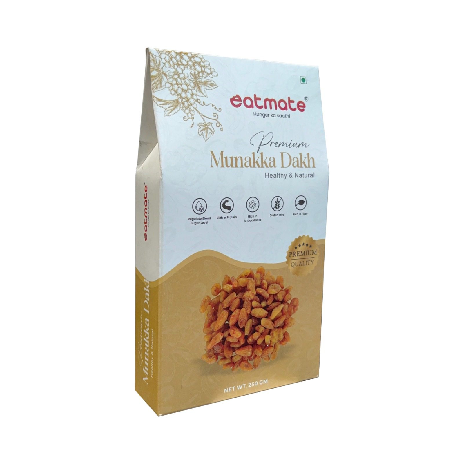 Eatmate Premium Munakka (Big Raisins) are much more than just a sweet treat. Unlike regular raisins, Munakka is considered highly medicinal in Ayurveda. These large, brown grapes are sun-dried with their seeds intact to preserve their cooling properties and high iron content. They are excellent for improving appetite, soothing the stomach, and aiding in recovery from weakness. Soaking them overnight makes them soft, juicy, and even more beneficial for your digestive system.
