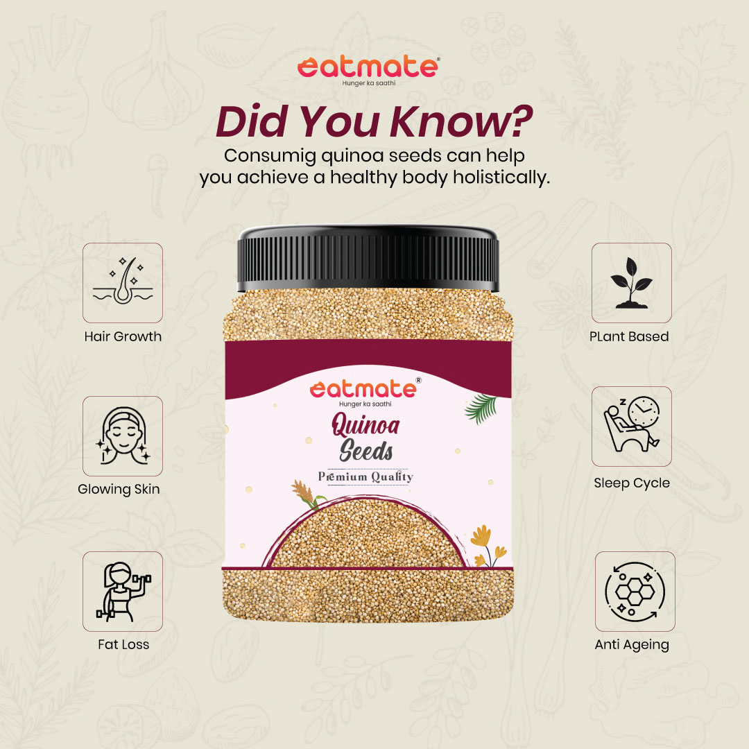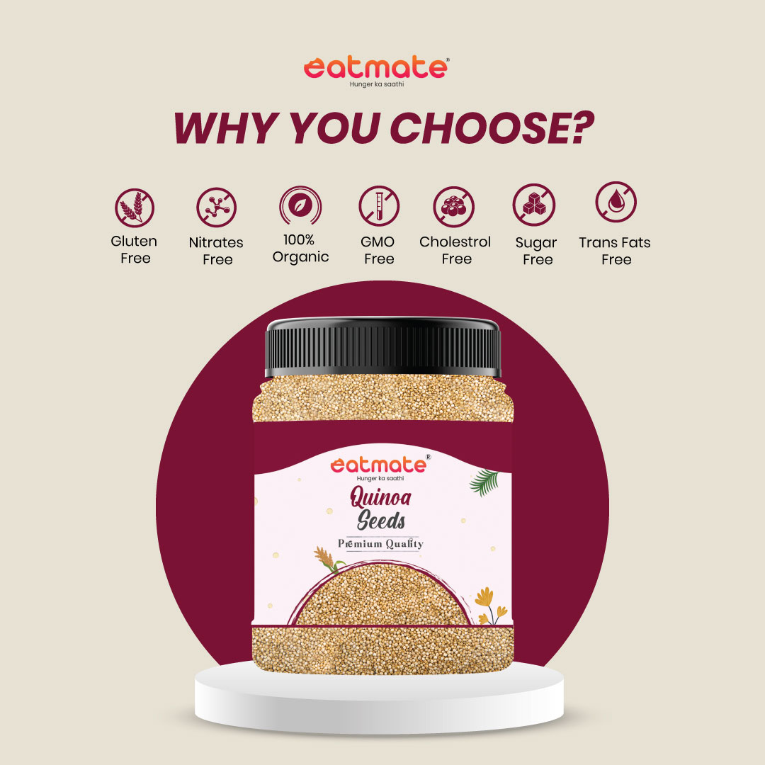 Eatmate Premium Quinoa is a gluten-free supergrain that packs a punch with all nine essential amino acids. It is an excellent substitute for rice or pasta, offering a lower glycemic index and a significantly higher protein profile. Our quinoa is pre-washed to remove bitterness, ensuring a light, fluffy texture and a subtle nutty flavor every time you cook. It’s the ultimate fuel for athletes, vegetarians, and anyone pursuing a balanced lifestyle.